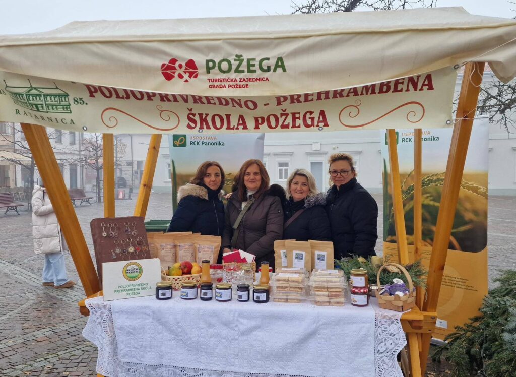 Osim poznatih pita od jabuka, u ponudi su bili i pirovo brašno, pekmezi, čajevi, božićni aranžmani i ukrasi. Na školskom štandu sudjelovale su nastavnice Tonka Šarić, Mirjana Oroz, Ana Ćorić i Kristina Gajić te učenici Domagoj Petrović, Karlo Kakuk, Tin Nenadović i Bruno Potočki.