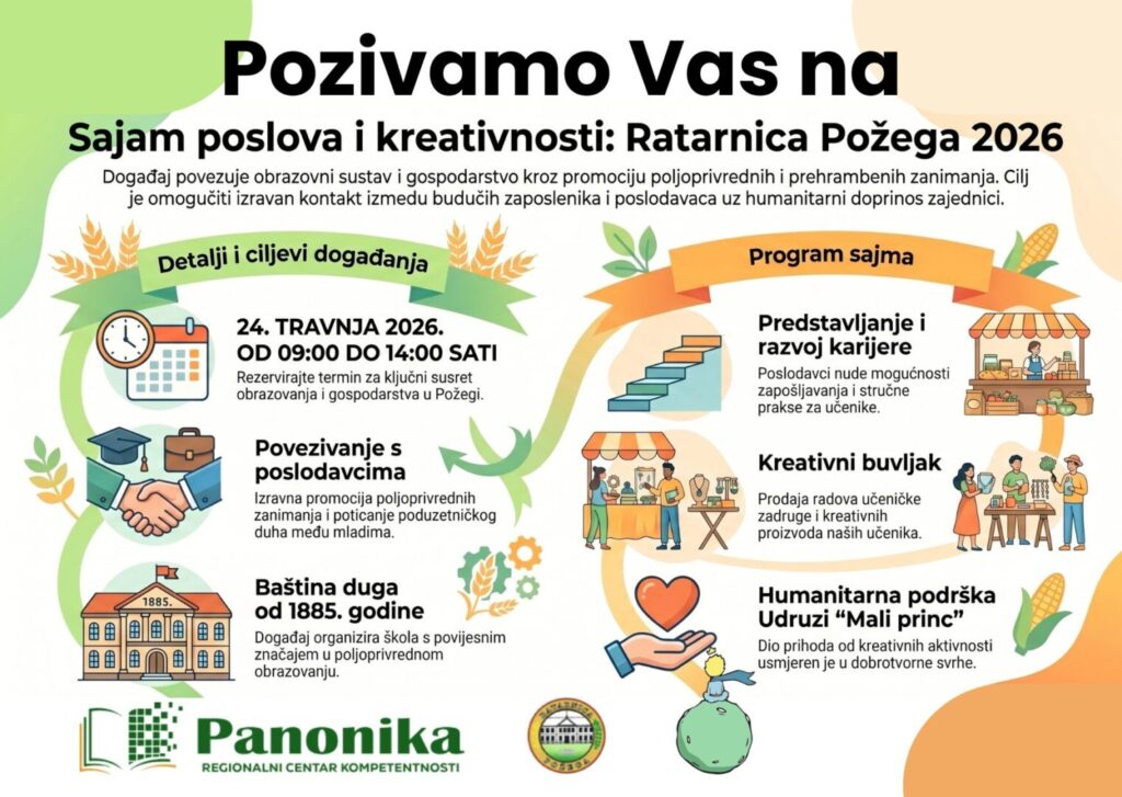 POLJOPRIVREDNO-PREHRAMBENA ŠKOLA POŽEGA 34 000 Požega, Ratarnička br. 3 KLASA: 112-02/01-26/34 URBROJ: 2177-18-01-26-1 Požega, dna 22. 04. 2026. U okviru projekta „Obrazujmo se zajedno VIII“, a prema javnom pozivu „Osiguravanje pomoćnika u nastavi i...